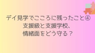 デイ見学で伺った支援級と支援学校のお話。情緒面をどう守るか、職員さんの経験から教えていただいたことを、ヨチ妹の成長を思いながらまとめました。