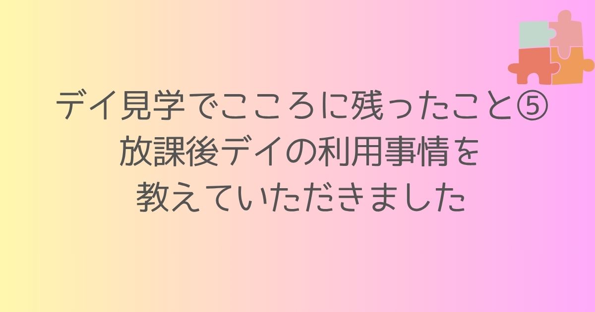 デイの見学で教えていただいたお話をいろいろと書いてきましたが、最後に、もうひとつ教えていただいたことがありました。それは放課後等デイサービスについてです。
